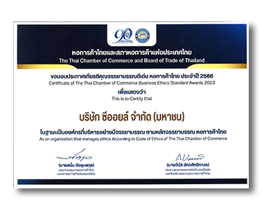 Certificate of Thai Chamber of Commerce Business Ethics Standard Awards 2023