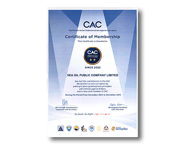 The Company was certified as a member of the Thai Private Sector Collective Action Against Corruption (CAC) reflects the company's commitment and accountability in conducting its business in a transparent , ethical and consistent manner with the good corporate governance.