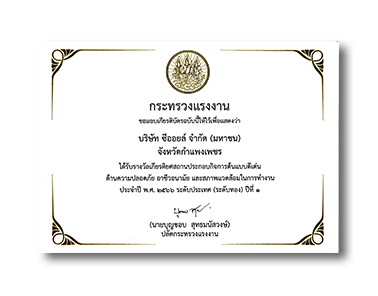 Sea Oil Public Company Limited was awarded the National Excellence Award for Model Workplace in Occupational Safety, Health, and Environment at the Gold Level by the Ministry of Labor for the year 2024. (Kamphaeng Phet branch)