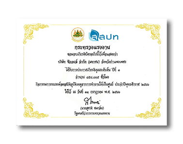 Sea Oil Public Company Limited at the Songkhla and Kamphaeng Phet operations has been awarded a certificate for good hygiene standards in food production and the Hazard Analysis and Critical Control Points (GHPs & HACCP) system.