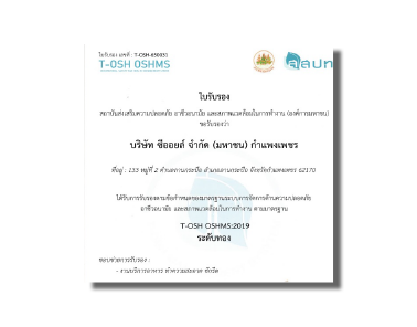 Golden Award Standards for safety, occupational health and working environment management systems. (Songkhla and Kamphaeng Phet province)